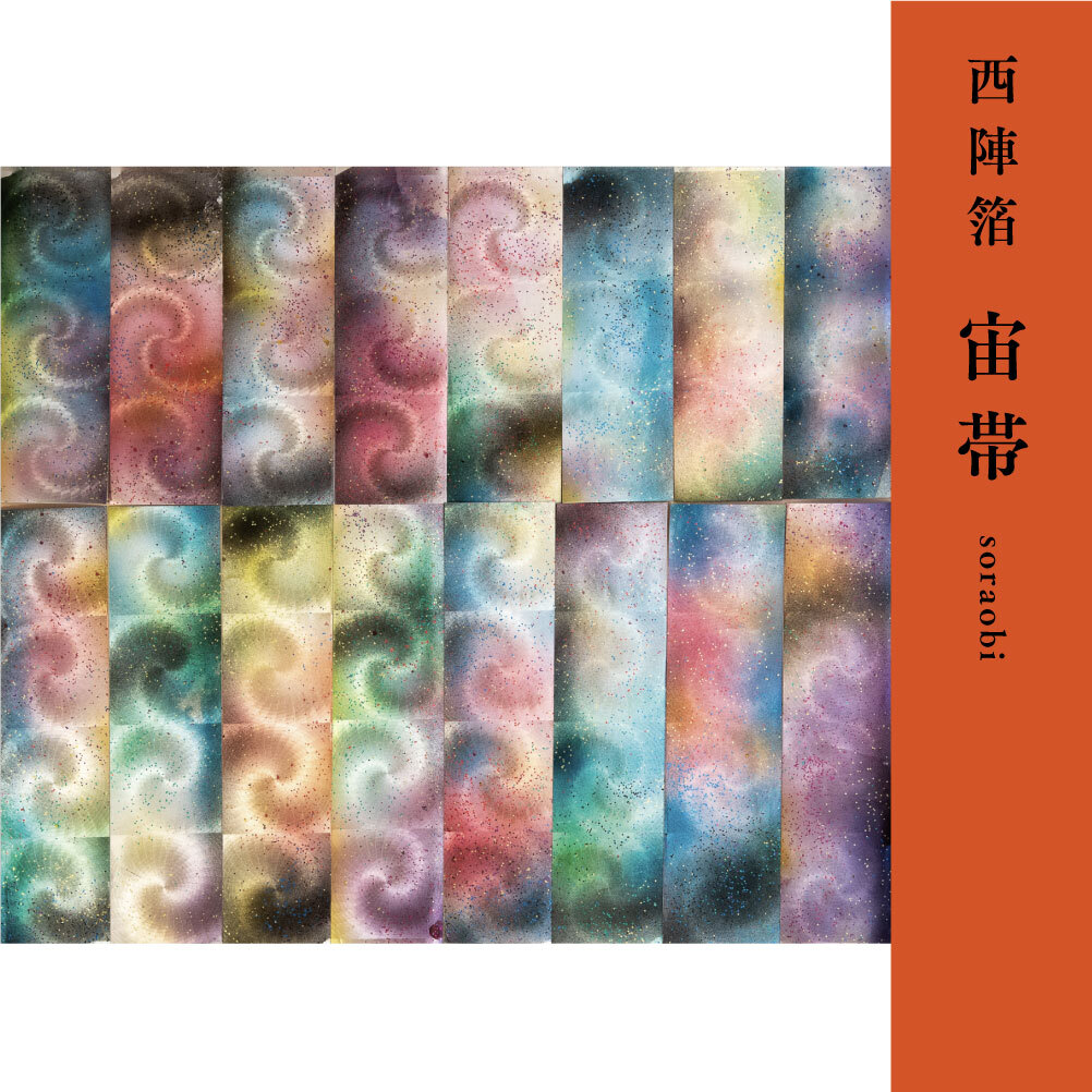 一般的に「箔」とは薄くした金属や金粉などのことを指すが、西陣では貼り絵箔など彩色を施した状態の和紙を「箔」と呼ぶ。